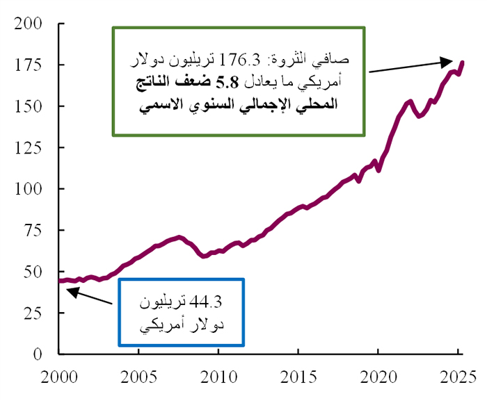 تمثل الأسهم المملوكة بشكل مباشر وغير مباشر 35% من صافي ثروة الأسر، كما أن النمو السنوي بنسبة 14% في المؤشرات الرئيسية له تأثير كبير على الثروة، مما يوفر تأثيراً إيجابياً يعزز معنويات الاستهلاك. كما تظل قنوات الاقتراض ديناميكية، حيث نما إجمالي الائتمان الممنوح للأسر بمقدار 352 مليار دولار أمريكي في الربعين الأولين ويستمر في دعم الإنفاق خلال هذا الربع. وتساهم هذه العوامل مجتمعة في الحفاظ على استهلاك الأسر كمحرك رئيسي لزخم الناتج المحلي الإجمالي الحقيقي، حيث يمثل ثلثي نمو الناتج المحلي الإجمالي الحقيقي المتوقع لهذا الربع.