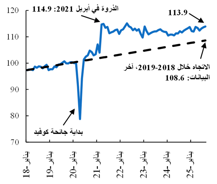 (المؤشر: 100، يناير 2020) المصادر: مكتب الإحصاء، مكتب إحصاءات العمل، قسم الاقتصاد في QNB