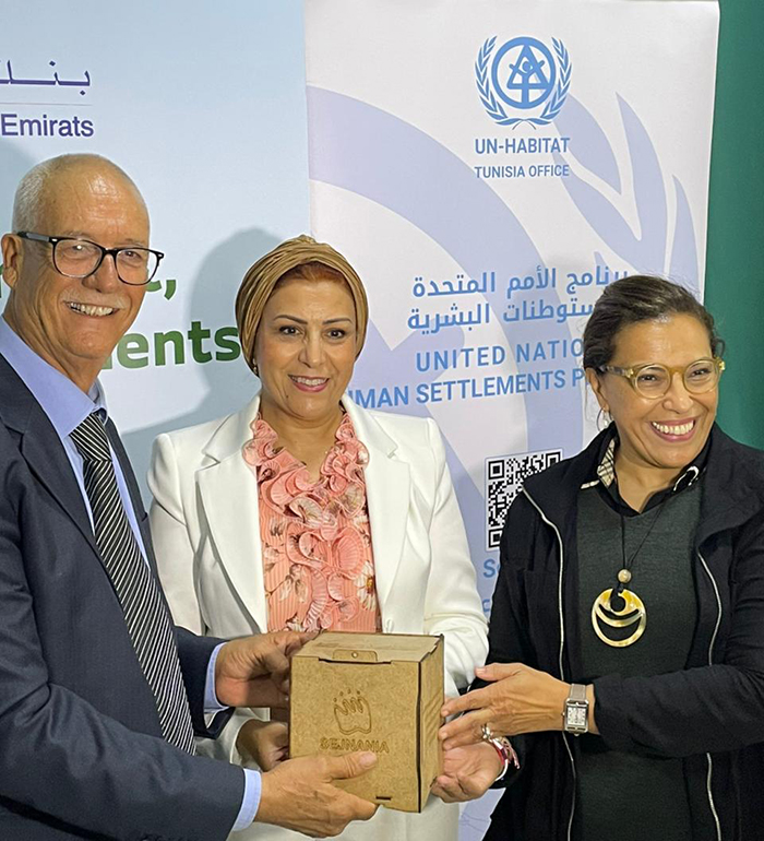 يعمل برنامج الأمم المتحدة للمستوطنات البشرية (ONU-Habitat) على تعزيز مدن ومجتمعات مستدامة وشاملة وقادرة على الصمود. وفي تونس، يرافق البرنامج الفاعلين الوطنيين والمحليين في مجالات التخطيط العمراني، وإدارة المخاطر المناخية، وتعزيز الإدماج الاجتماعي. ومن خلال مشروع "صمود"، يدعم البرنامج بلدية قرقنة في تنفيذ حلول مستدامة تتلاءم مع خصوصياتها المحلية، مع الحرص على ألا تُترك أي فئة من المجتمع خلف الركب.