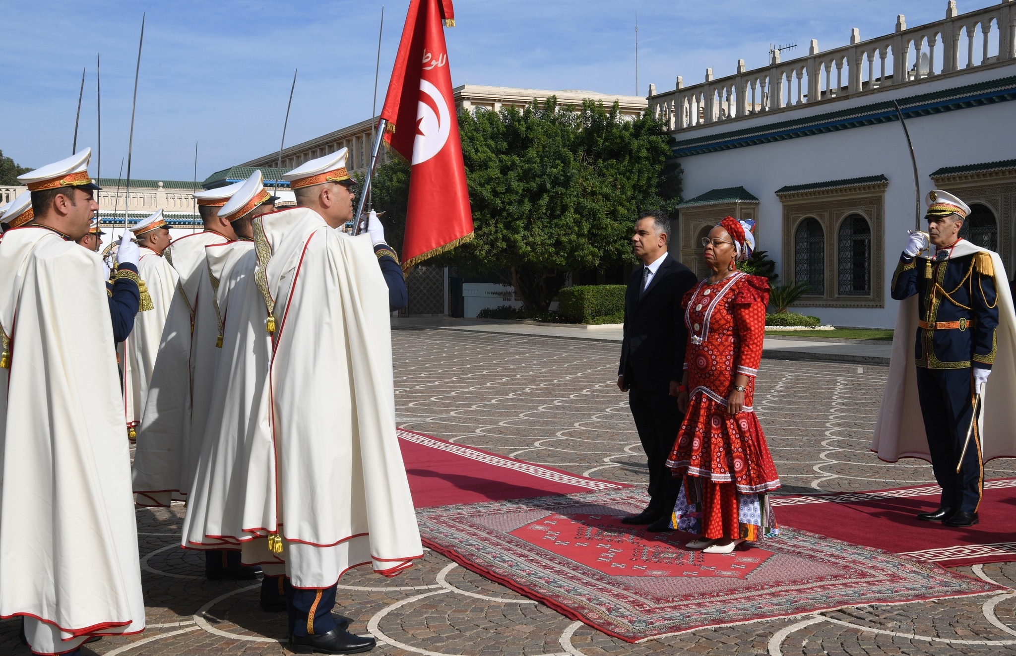 وجرى هذا الموكب بحضور السيّد محمّد بن عيّاد، كاتب الدولة لدى وزير الشؤون الخارجية والهجرة والتونسيين بالخارج.
