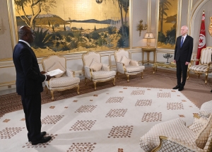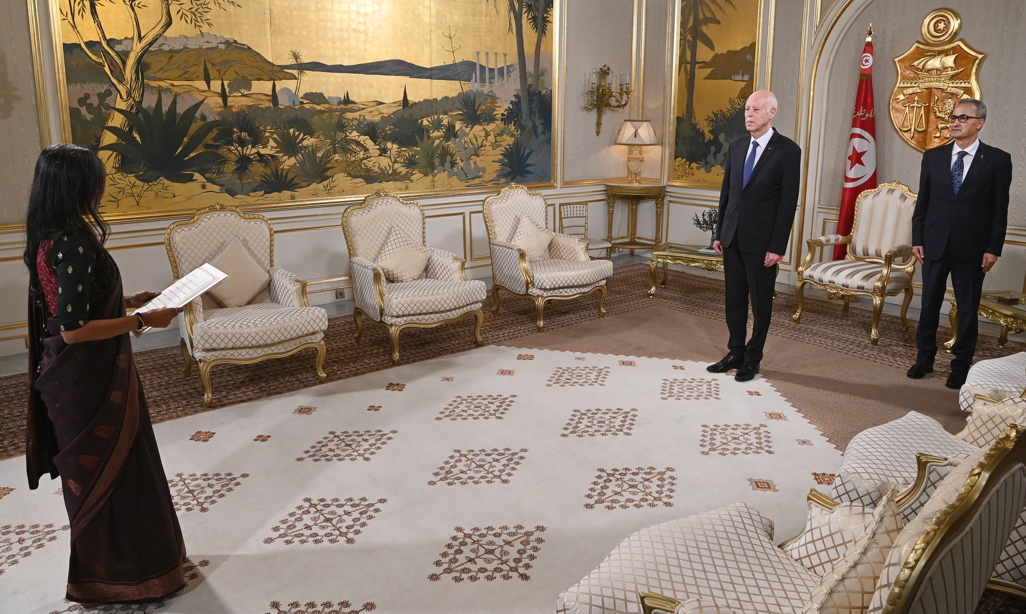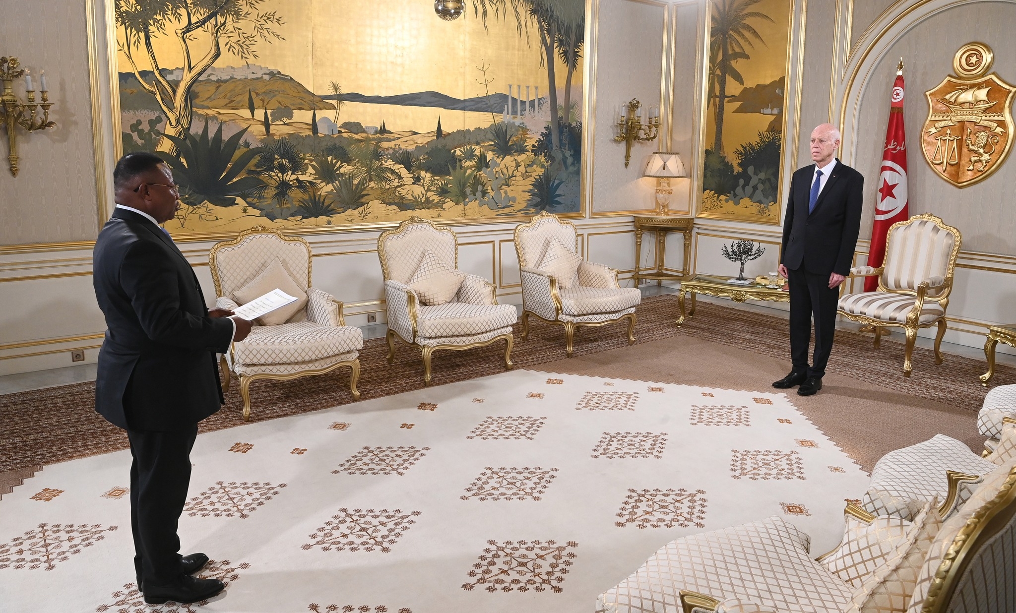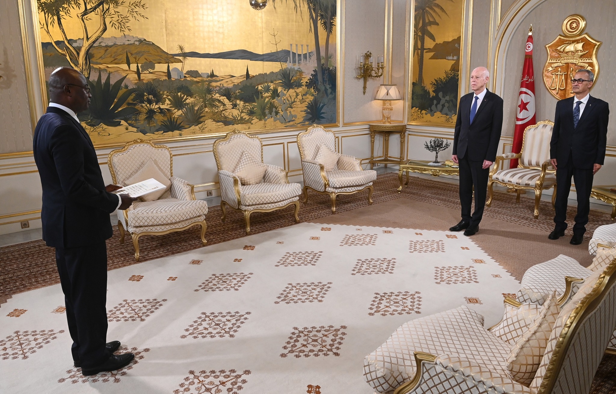 أشرف رئيس الجمهورية قيس سعيّد يوم الخميس 6 نوفمبر الجاري بقصر قرطاج، على موكب تسلّم خلاله أوراق اعتماد سفراء أجانب جدد بتونس وهم على التوالي: