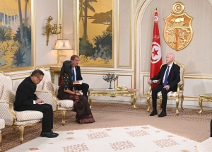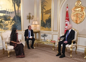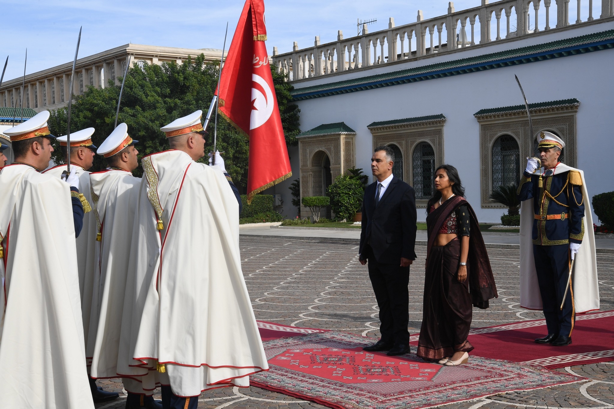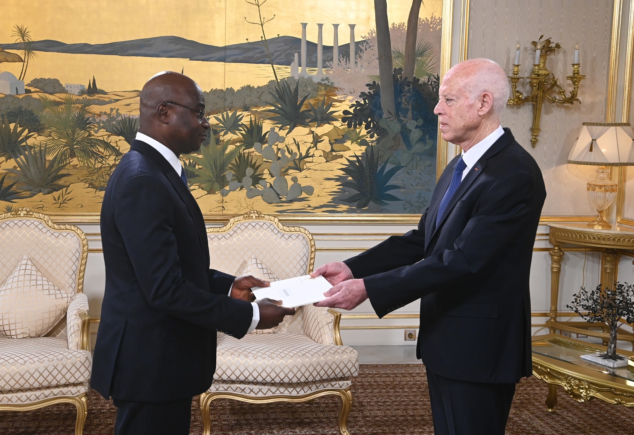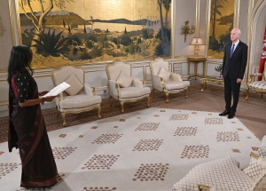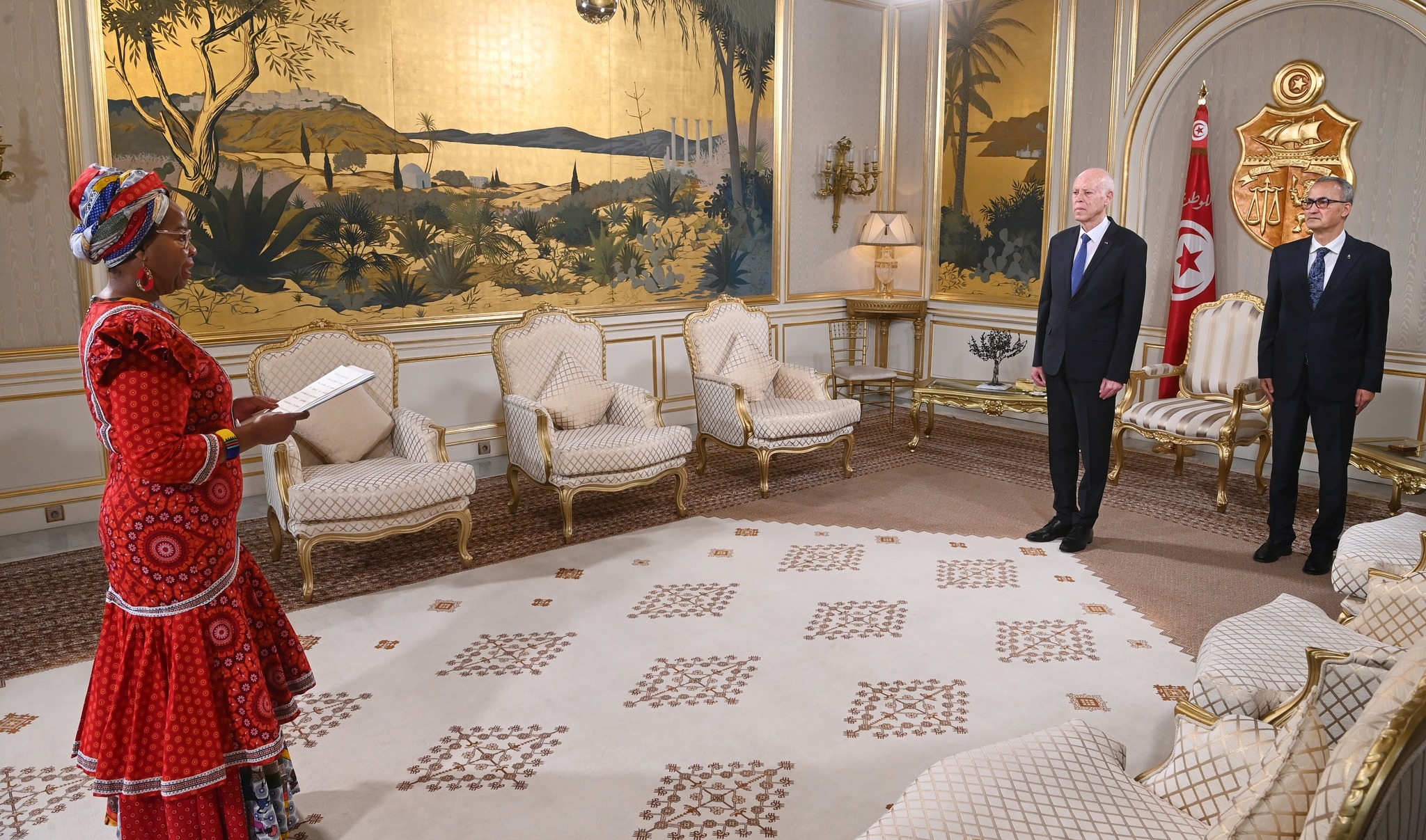 أشرف رئيس الجمهورية قيس سعيّد يوم الخميس 6 نوفمبر الجاري بقصر قرطاج، على موكب تسلّم خلاله أوراق اعتماد سفراء أجانب جدد بتونس وهم على التوالي: