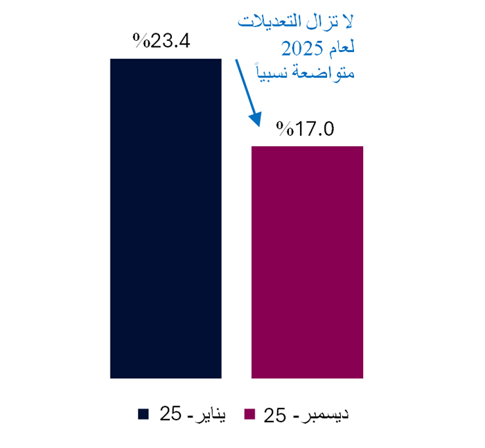 (بالنسبة المئوية، بداية ونهاية الفترة، 2025)المصادر: هيفر، تحليلات QNB
