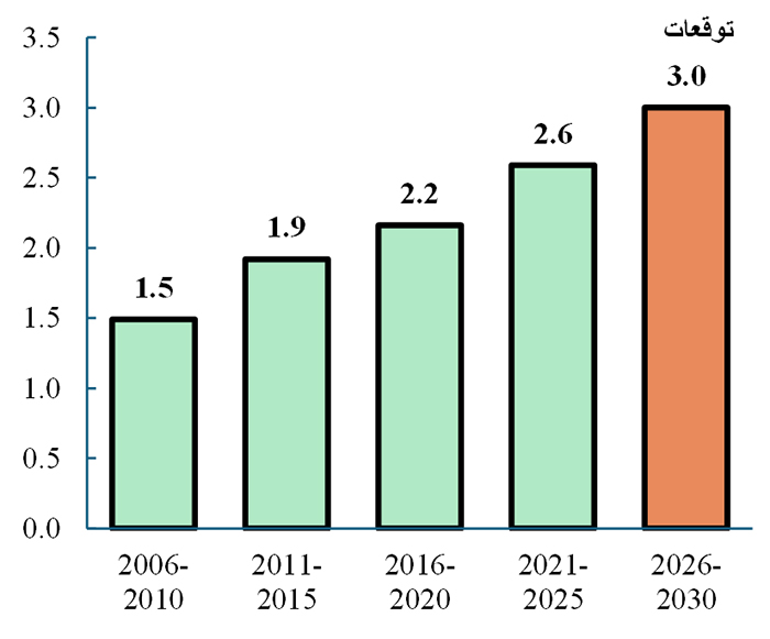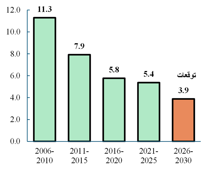 (نسبة مئوية سنوية، مقارنة بالسنوات السابقة، متوسط 5 سنوات)
